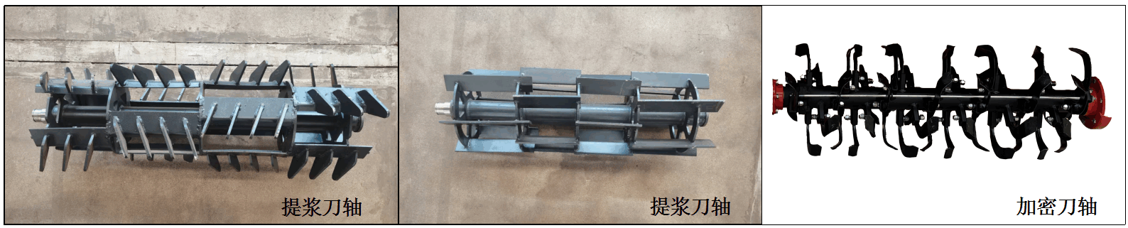 可根據水旱田及農藝需要配制:提漿刀軸、加密刀軸