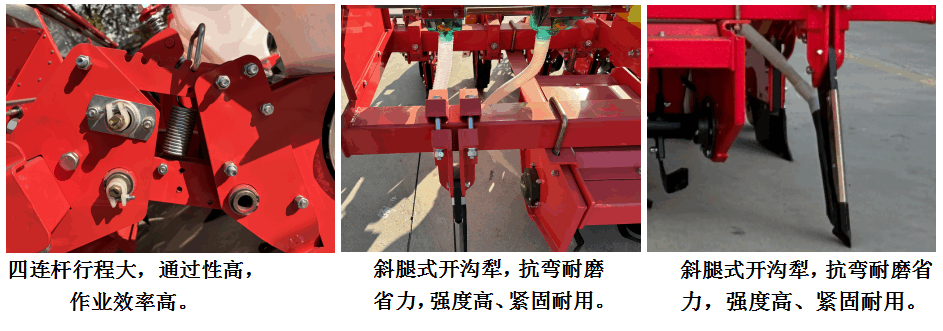 6、地輪采用單臂設計,有效避免纏繞、擁堵,各行傳動(dòng)軸連成一體,統一驅動(dòng),傳動(dòng)動(dòng)力大,即使其中一側地輪偶然打滑也不影響正常播種:播種單體采用仿形設計,可隨地面上下浮動(dòng)、可實(shí)現播深一致。