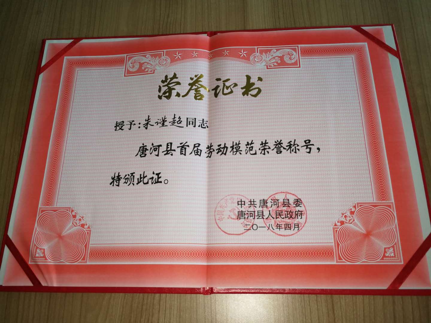 在“五·一”來(lái)臨之際,唐河縣委、唐河縣人民政府為首屆勞動(dòng)模范頒發(fā)了榮譽(yù)證書(shū)及獎?wù)?。亞澳南?yáng)公司朱謹超同志喜獲殊榮。