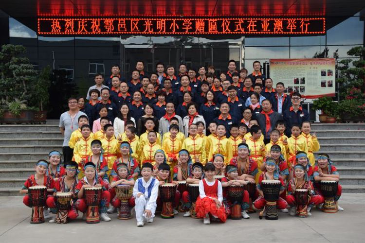亞澳董事長(cháng)史可器代表公司接受牌匾,表示幫學(xué)助學(xué)是中華民族的傳統美德,是培育人才的希望工程,當然也是企業(yè)家們所開(kāi)展的一項看得見(jiàn)、摸得著(zhù)的民心工程,會(huì )繼續堅持扶貧幫困,愛(ài)心助學(xué)。光明小學(xué)的師生們還表演了精彩的節目:中華武術(shù)、激情手鼓《漂亮寶貝+巴伽女孩》,詩(shī)朗誦《盛世亞澳》!