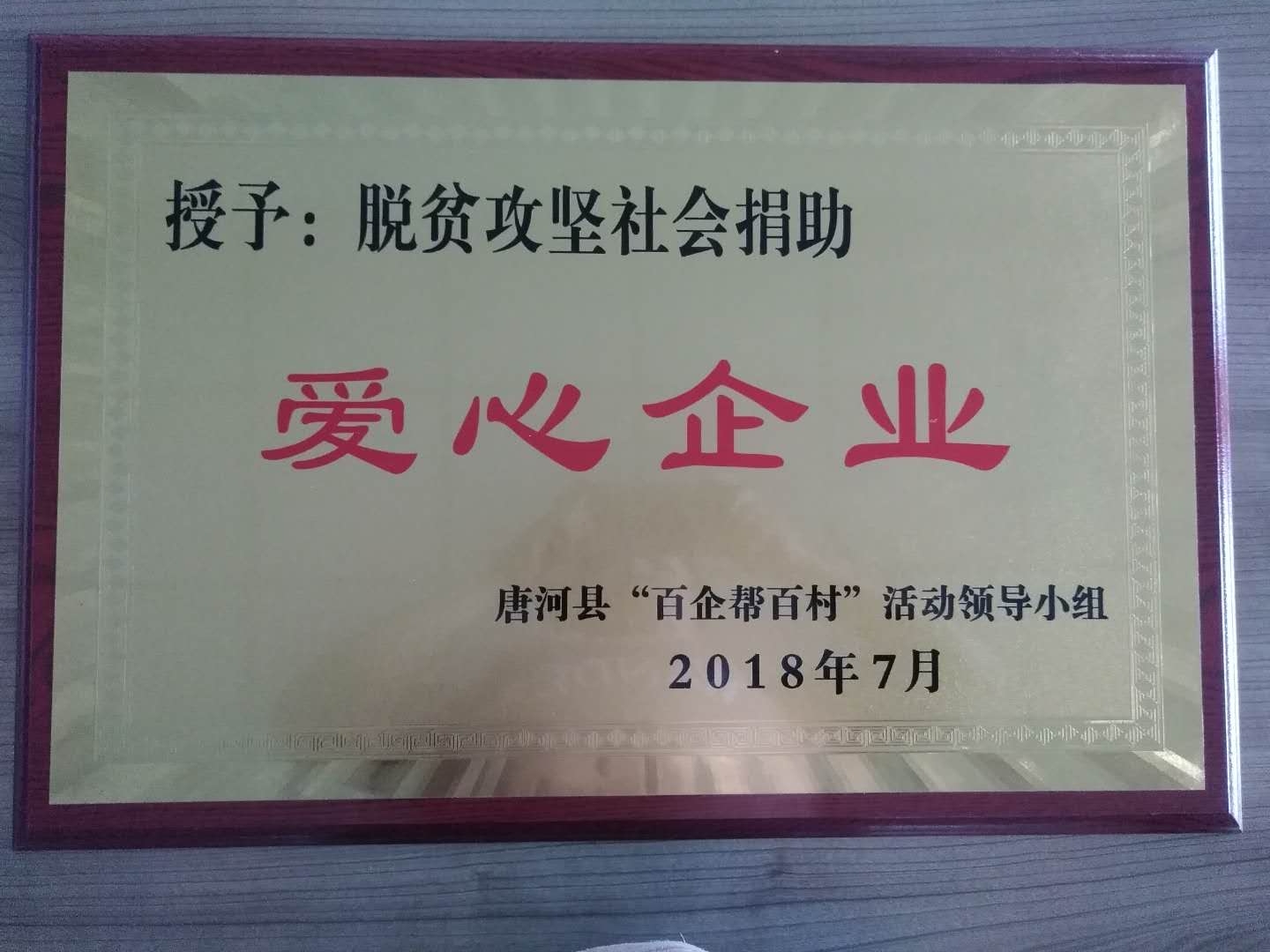 7月9日上午,在唐河縣召開(kāi)的南陽(yáng)市社會(huì )扶貧工作現場(chǎng)會(huì )上,亞澳南陽(yáng)農機有限責任公司被唐河縣委縣政府授予脫貧攻堅社會(huì )捐助“愛(ài)心企業(yè)”。