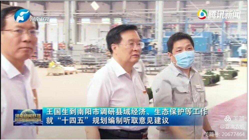 河南省委常委、省委秘書(shū)長(cháng)穆為民陪同調研,亞澳南陽(yáng)農機總經(jīng)理史炳哲介紹相關(guān)情況!
