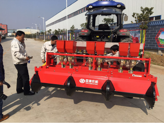 唐河縣土地面積250多萬(wàn)畝,花生種植面積60多萬(wàn)畝。為了推進(jìn)唐河花生種植面積能夠進(jìn)一步擴大,縣政府指示依托縣農機產(chǎn)業(yè)園亞澳農機生產(chǎn)、研發(fā)專(zhuān)門(mén)用于花生種植、收獲的機械。亞澳今天投放市場(chǎng)的花生精量播工作效率相當于60人的工作量,已成為春耕的主力軍。在上屯鎮演示會(huì )現場(chǎng),隆隆的機聲中,四臺不同規格的花生精量施肥播種機同時(shí)作業(yè)。所到之處,能夠一次性完成播種、施肥、起壟等多道工序,實(shí)現了多壟多行寬幅聯(lián)合播種作業(yè)。