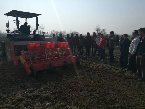 現場(chǎng)會(huì )上,亞澳專(zhuān)業(yè)技術(shù)人員及銷(xiāo)售經(jīng)理對我廠(chǎng)新研發(fā)的花生精量播種機做了詳細介紹,各鄉鎮社員及各站站長(cháng)針對花生種植技術(shù)、施肥方法和機械化播種等方面做了詳細講解。隨后,60名用戶(hù)和農技人員一同觀(guān)摩了機械化播種演示。