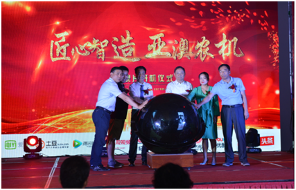 7月11日上午,CCTV發(fā)現之旅《匠心智造》欄目亞澳農機開(kāi)機儀式隆重舉行。匠心欄目組監制李會(huì )晴、導演張軍賢、中國農業(yè)機械化協(xié)會(huì )劉憲會(huì )長(cháng)、中國農機工業(yè)協(xié)會(huì )劉偉華副秘書(shū)長(cháng)、農業(yè)部農機推廣總站劉司法處長(cháng)、中國農機流通協(xié)會(huì )馬錚處長(cháng)、中國農機安全報社王建鵬副社長(cháng)、陜西省農業(yè)機械化管理局上官永副局長(cháng)、甘肅省農業(yè)機械質(zhì)量管理總站張恩貴站長(cháng)、山西省農機推廣站張玉峰站長(cháng)、陜西省農業(yè)機械鑒定站王延宏站長(cháng)、陜西省農業(yè)機械研究所賀功民所長(cháng)、戶(hù)縣人民政府毛安副縣長(cháng)、西安灃京工業(yè)園黨工委楊波書(shū)記、西安亞澳農機股份有限公司董事長(cháng)史可器、總經(jīng)理史森強及各地經(jīng)銷(xiāo)商、給供應商等300余人參加開(kāi)機儀式.