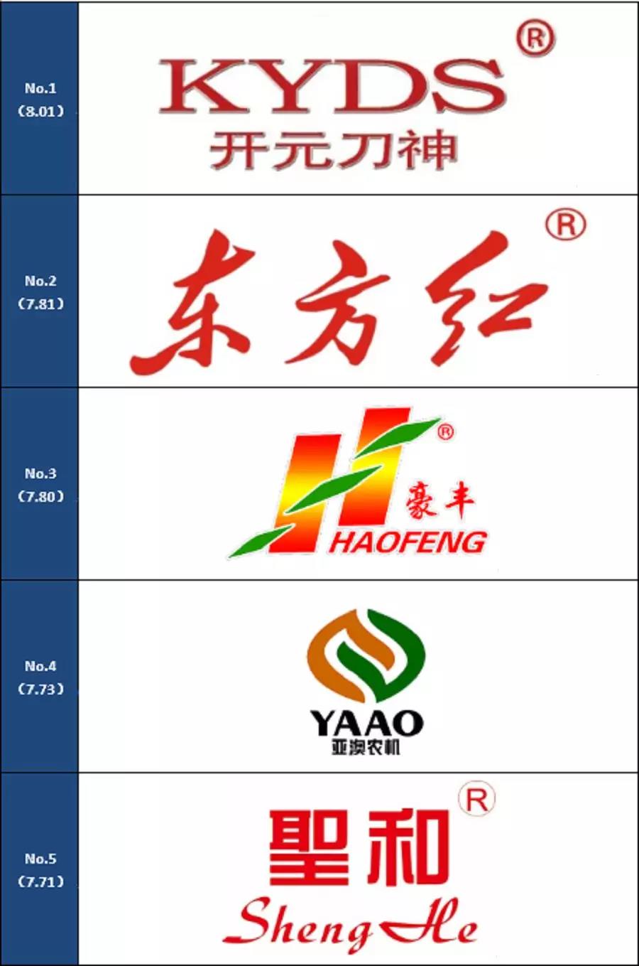 通過(guò)上面的一系列計算,入選旋耕機滿(mǎn)意品牌的是:開(kāi)元刀神、豪豐、東方紅、亞澳、圣和。